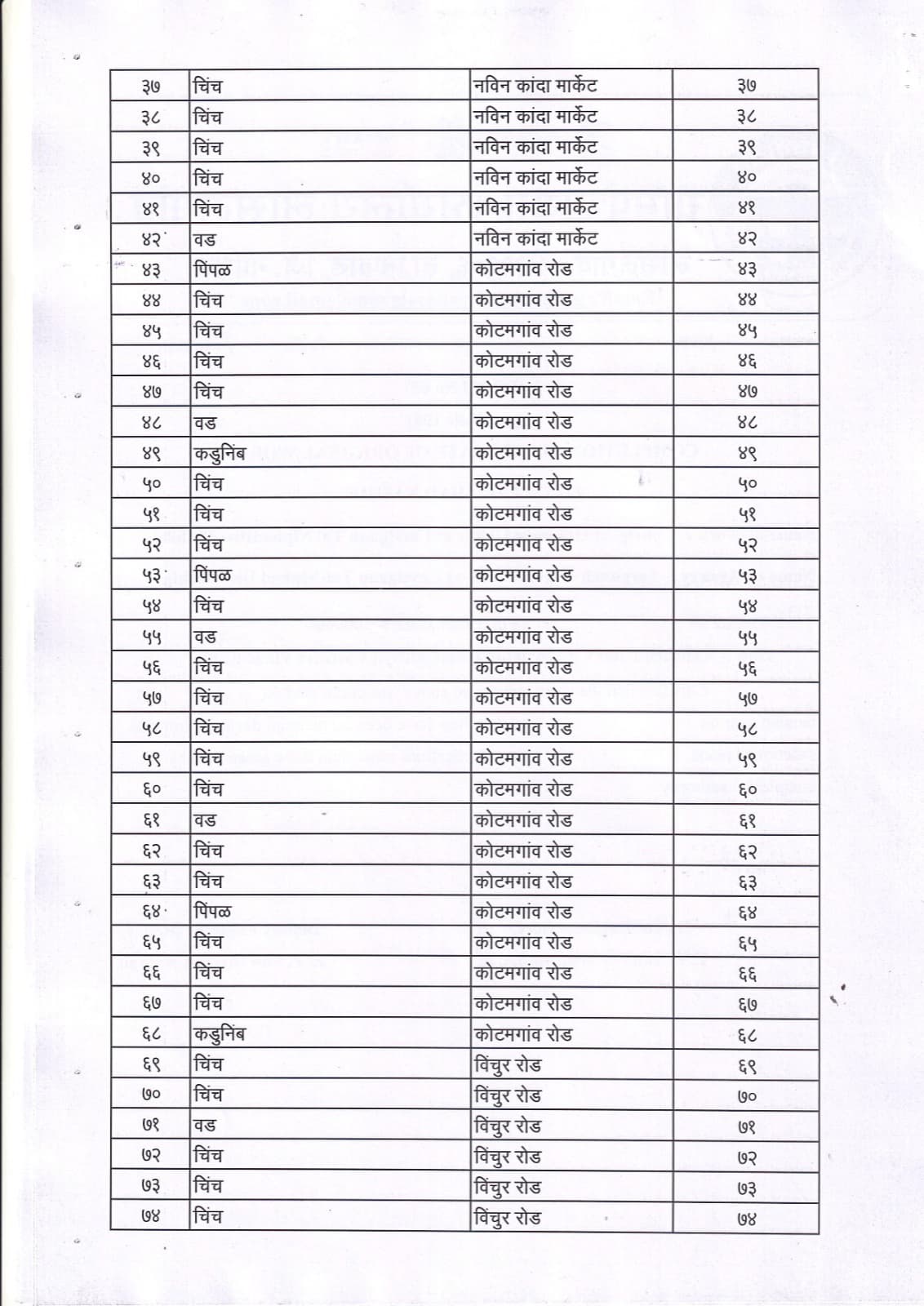 वृक्ष गणना नोंद व प्रसिद्ध यादी - 3